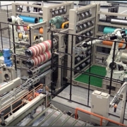 此為本司與日本最大專業廠商-日鐵住金株式會社(NS-TEXENG)合作,以Robot 排刀方式線上外用左右二組機械手臂將下制程的上下組刀裝入自走式4刀軸的上二軸,排好刀組後等待設備停機再做交換刀組的程式。