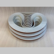 為適用各種不同分條材料,JDC株式會社(日本開發)開發出各種材質的專用皮帶(乾性-Urelt、濕式Anali、軟性皮革Lesat…等),此為原廠幹性Lesat皮帶,適用於乾性表面要求高的材料,例如:鋁料、BA Stainless鏡面等材料。